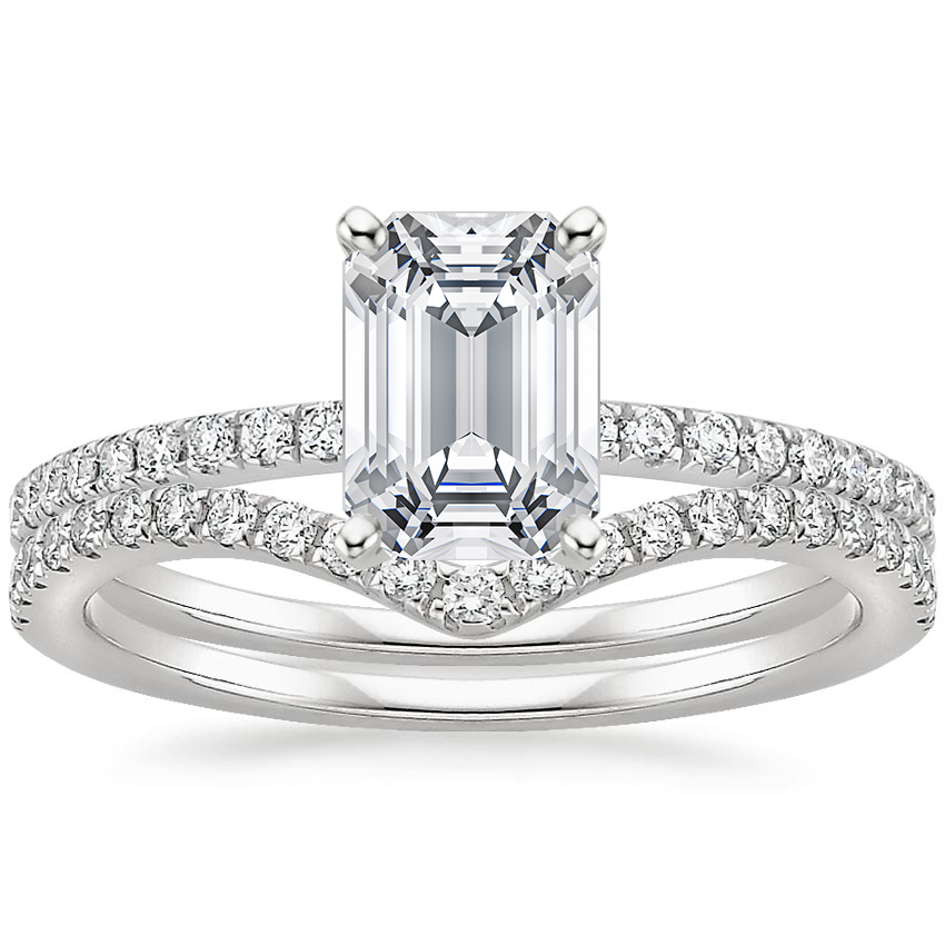This classic ring set features an engagement ring with sparkling scalloped pavé diamonds that flow elegantly half of the way down the band. ... Read More