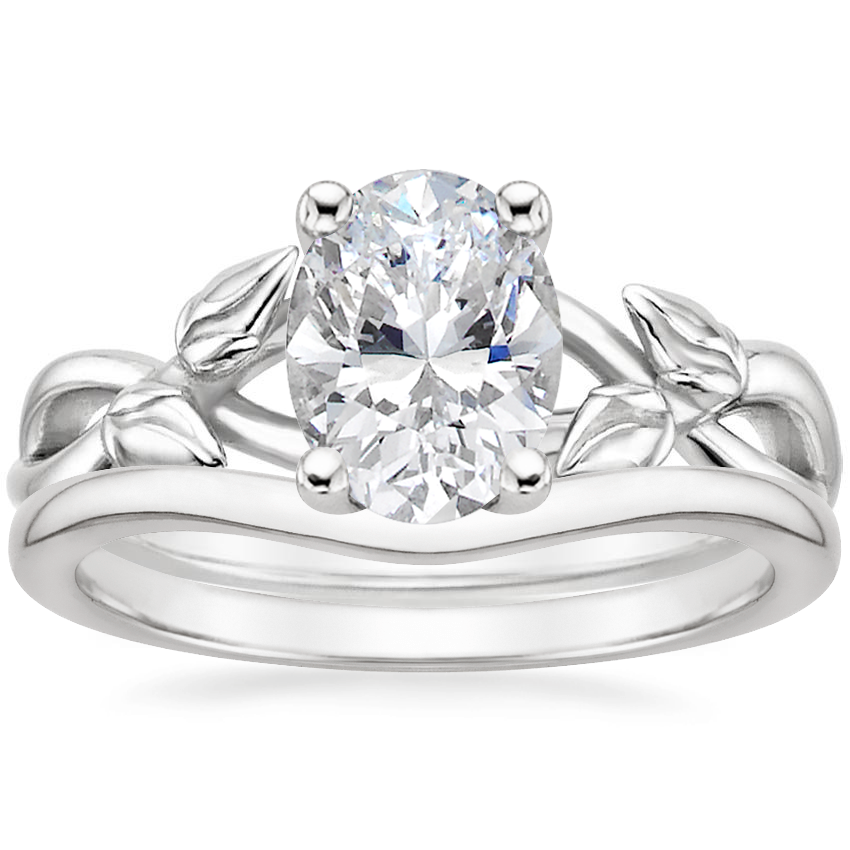 Platinum Budding Willow Ring with Petite Curved Wedding Ring