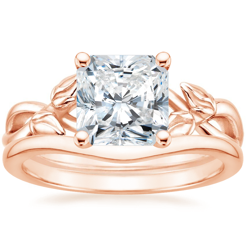 14K Rose Gold Budding Willow Ring with Petite Curved Wedding Ring