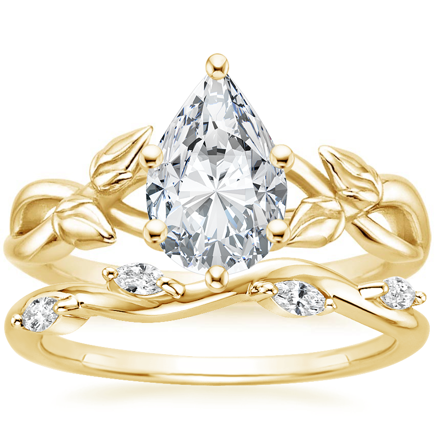 18K Yellow Gold Budding Willow Ring with Winding Willow Diamond Ring (1/8 ct. tw.)