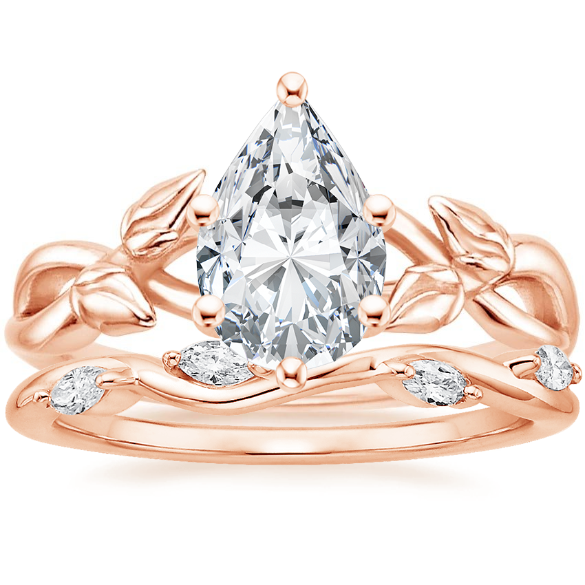 14K Rose Gold Budding Willow Ring with Winding Willow Diamond Ring (1/8 ct. tw.)