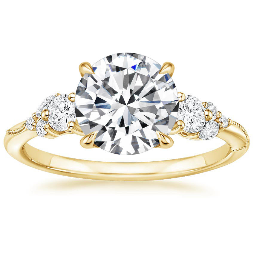 18K Yellow Gold Camellia Three Stone Diamond Ring (1/3 ct. tw.) with Winding Willow Diamond Ring