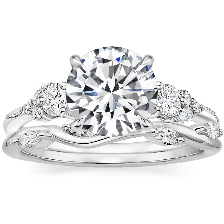Camellia Three Stone Diamond Ring (1/3 ct. tw.) with Winding Willow Diamond Ring in Platinum