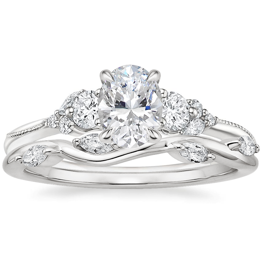 Platinum Camellia Three Stone Diamond Ring (1/3 ct. tw.) with Winding Willow Diamond Ring