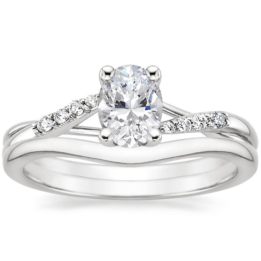 Platinum Chamise Diamond Ring (1/5 ct. tw.) with Petite Curved Wedding Ring
