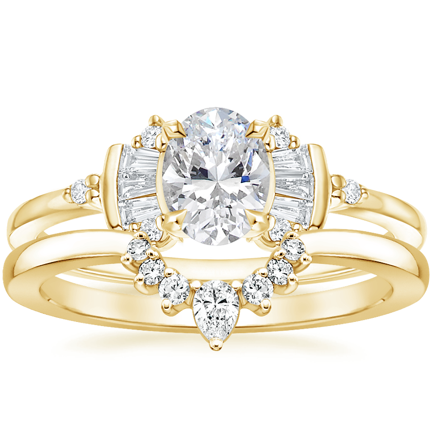18K Yellow Gold Daphne Art Deco Ring with Lunette Diamond Ring