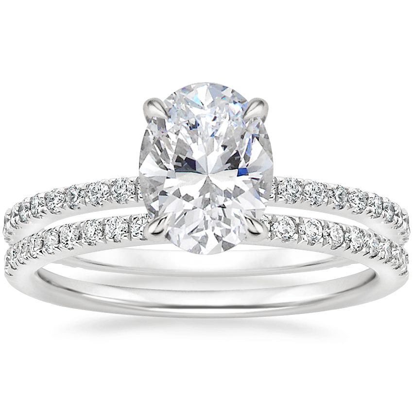 My fiance loved the ring. It looked gorgeous on her hand. I chose the ring online but also went in-store to check it out in person. The hidden halo is a very modern style and does not take away from the center stone and the petite band makes the diamond pop more. For reference - Diamond: Oval 1.65 Carat. Metal: Platinum and Ring size is 6.