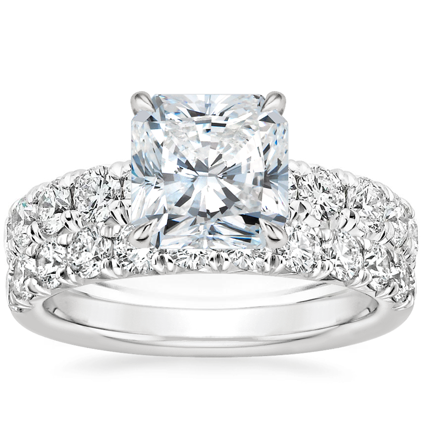 This set is absolutely stunning! I get compliments on it daily! If you love bling you will love this ring! It's sparkly and gorgeous and so comfortable to wear! It's also very well made! My diamond is five carats and my ring size is 6.5 to give you some perspective size wise! It is my dream bridal set! ...Read More