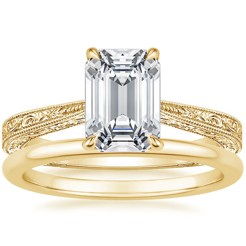 18K Yellow Gold Elsie Ring with Petite Comfort Fit Wedding Ring