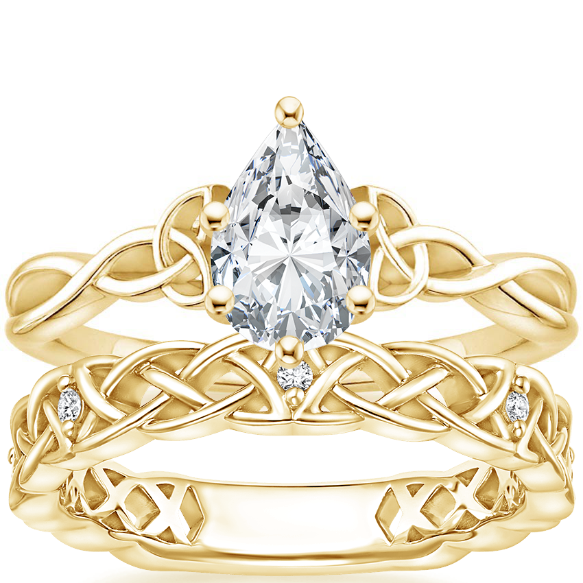 18K Yellow Gold Entwined Celtic Love Knot Ring with Celtic Knot Diamond Ring