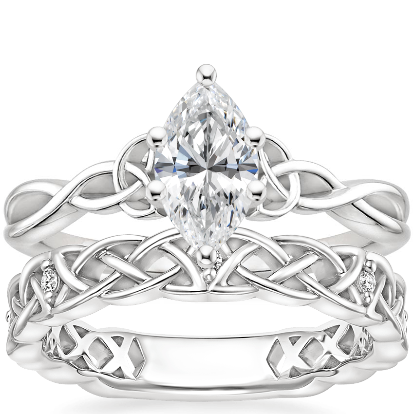 Entwined Celtic Love Knot Ring with Celtic Knot Diamond Ring in 18K White Gold