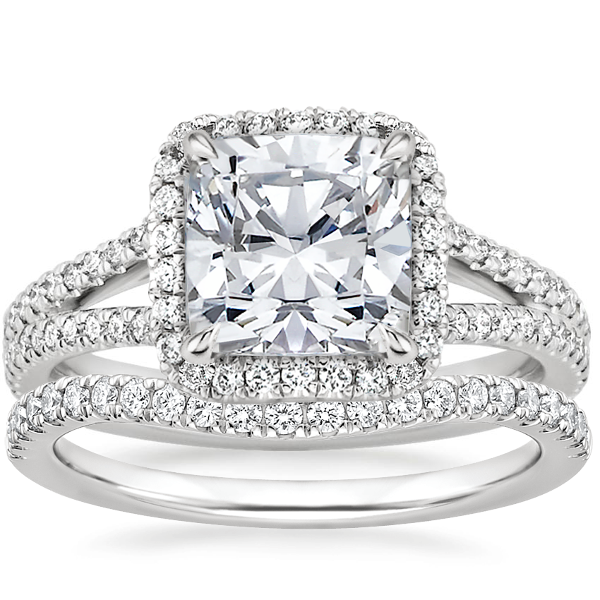 Absolutely beautiful ring ! Love the split shank and the halo. We went with a cushion cut, and I think it compliments the setting nicely. The ring gives lots of sparkle and we receive many compliments. It's been a few months and I still find myself staring at it and watching it sparkle in the light!