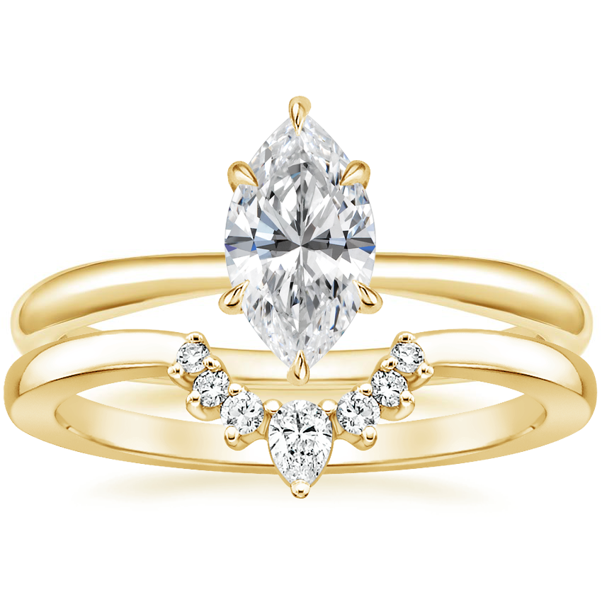 18K Yellow Gold Freesia Ring with Lunette Diamond Ring