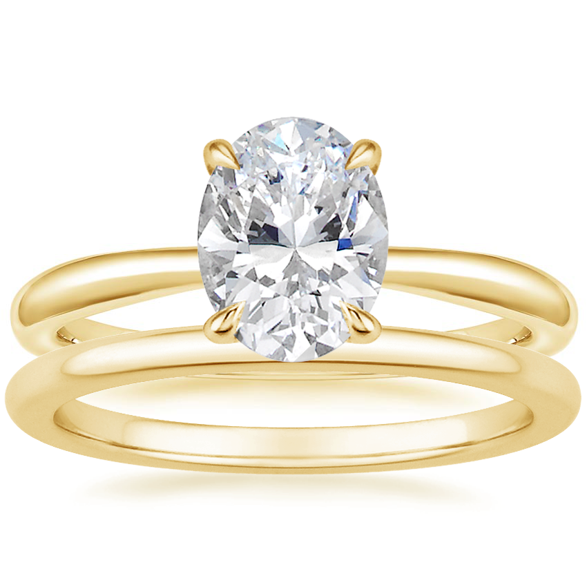 18K Yellow Gold Freesia Ring with Petite Comfort Fit Wedding Ring