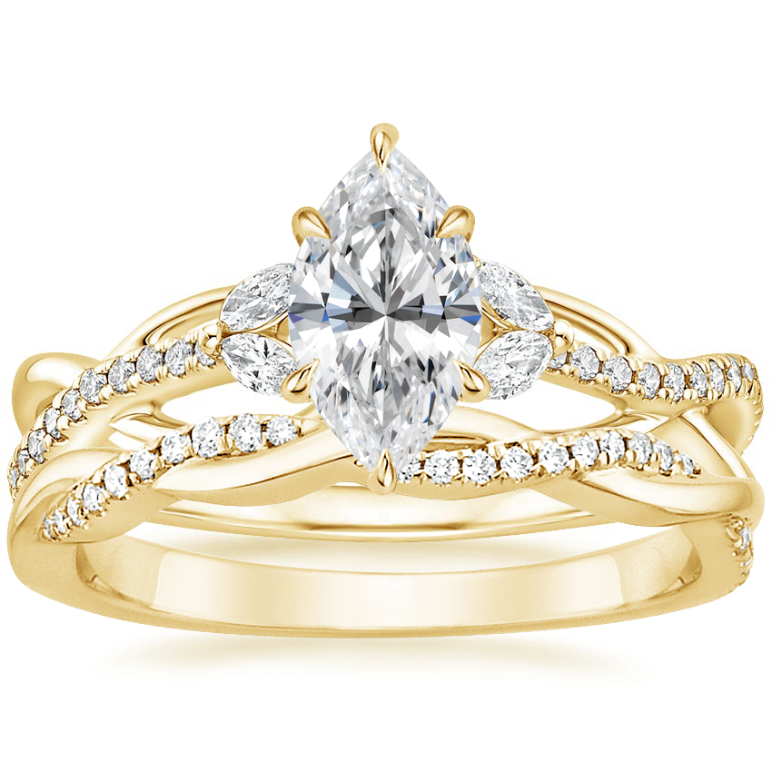 18K Yellow Gold Garland Diamond Ring with Petite Twisted Vine Diamond Ring (1/8 ct. tw.)
