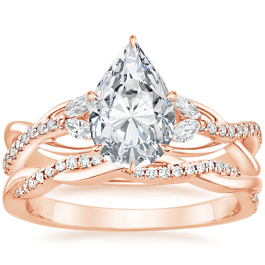 14K Rose Gold Garland Diamond Ring with Petite Twisted Vine Diamond Ring (1/8 ct. tw.)