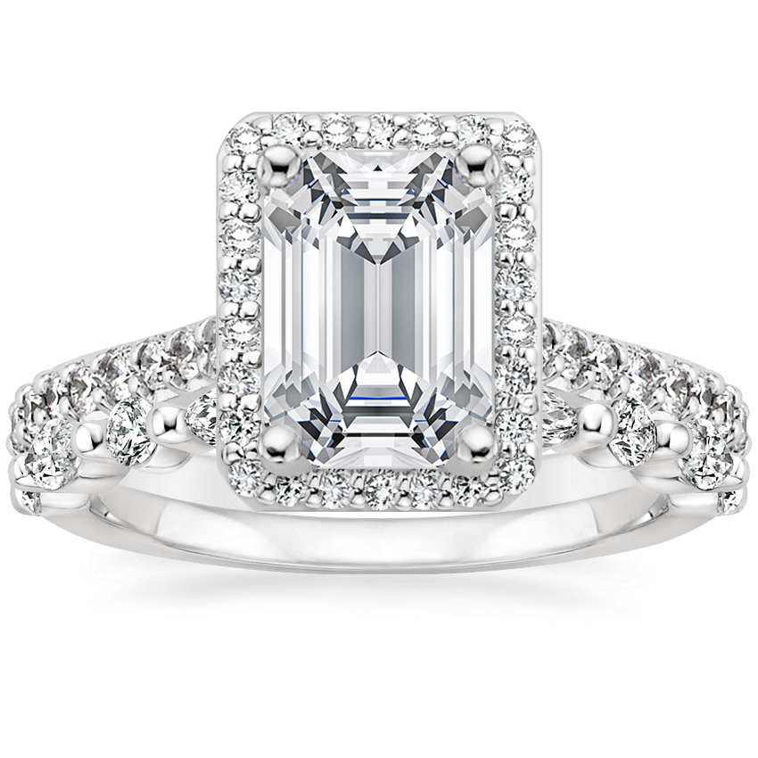 18K White Gold Halo Diamond Ring with Side Stones (1/3 ct. tw.) with Versailles Diamond Ring (3/8 ct. tw.)