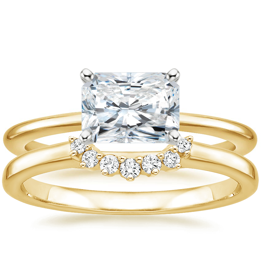 18K Yellow Gold Horizontal Petite Comfort Fit Ring with Crescent Diamond Ring