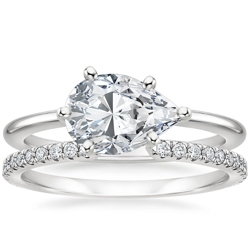 Love the East/west design. It really makes the diamond ring stand out when people notice a a huge shiny sideways setting. We have gotten so many compliments and it's nice to not have the same ring as everybody else .