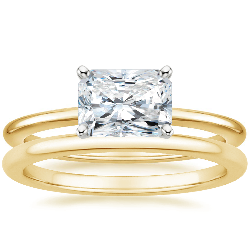 18K Yellow Gold Horizontal Petite Comfort Fit Ring with Petite Comfort Fit Wedding Ring