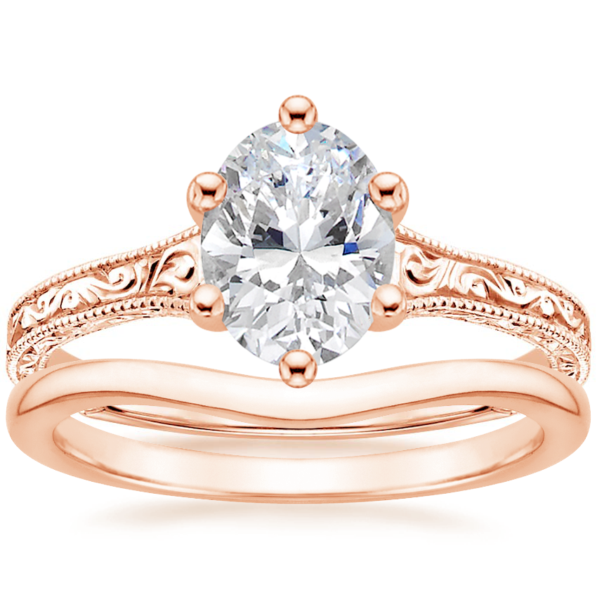 14K Rose Gold Hudson Ring with Petite Curved Wedding Ring