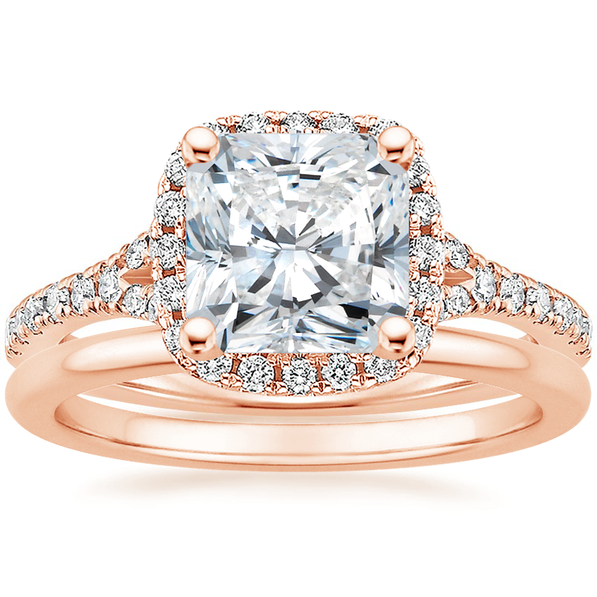 14K Rose Gold Joy Diamond Ring with Petite Comfort Fit Wedding Ring