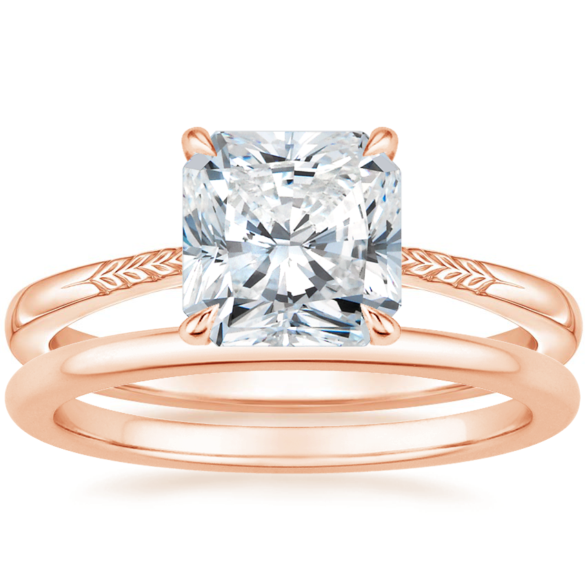 14K Rose Gold Laurel Engraved Ring with Petite Comfort Fit Wedding Ring