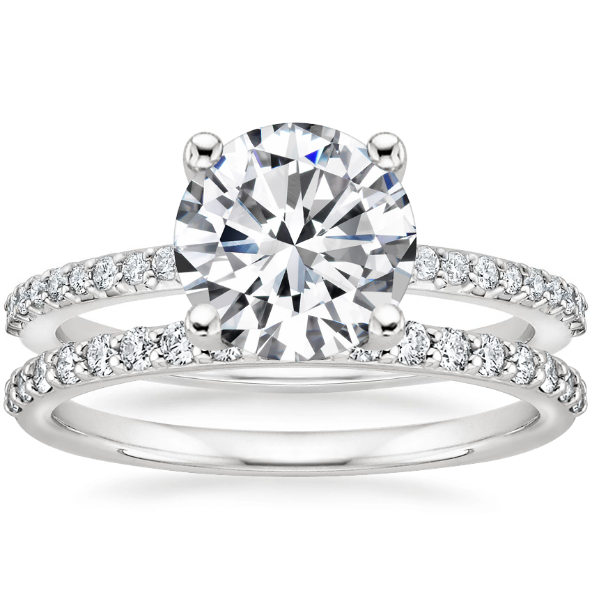 18K White Gold Liana Diamond Ring with Petite Shared Prong Diamond Ring (1/4 ct. tw.)