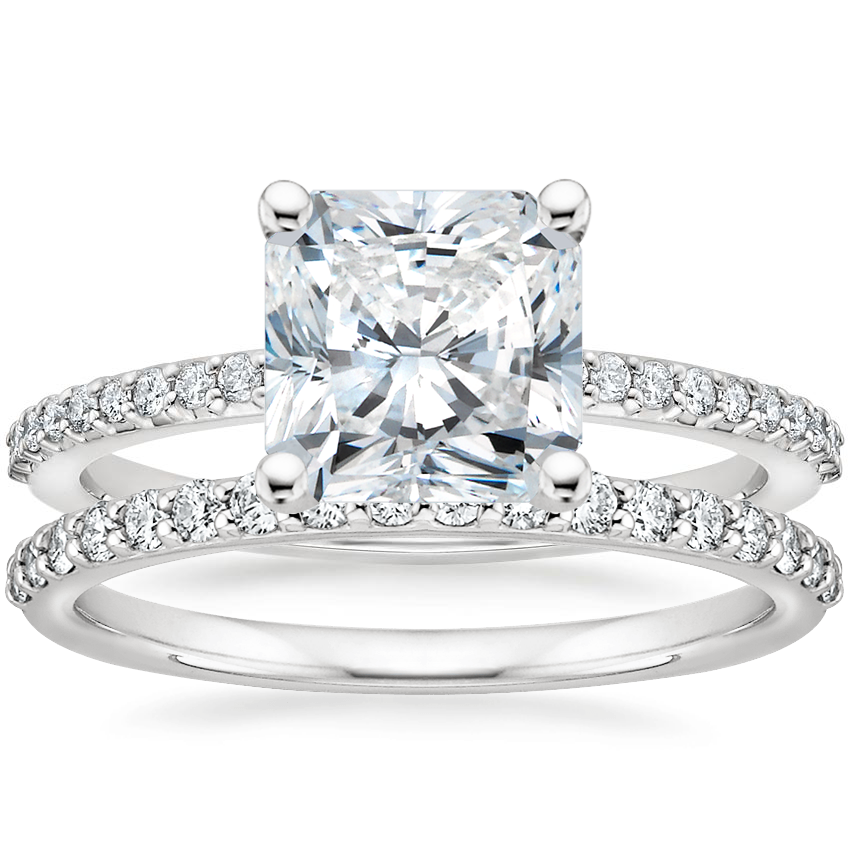 18K White Gold Liana Diamond Ring with Petite Shared Prong Diamond Ring (1/4 ct. tw.)