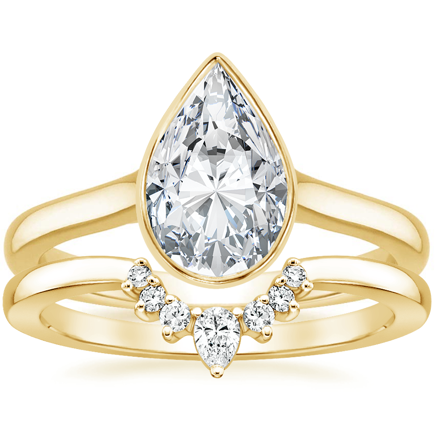 My husband surprised me with an upgrade to my original ring, and I'm absolutely thrilled. My diamond is a pear shape and I get compliments on this ring wherever I go. The bezel set gives it a very art deco kind of look, which I love.