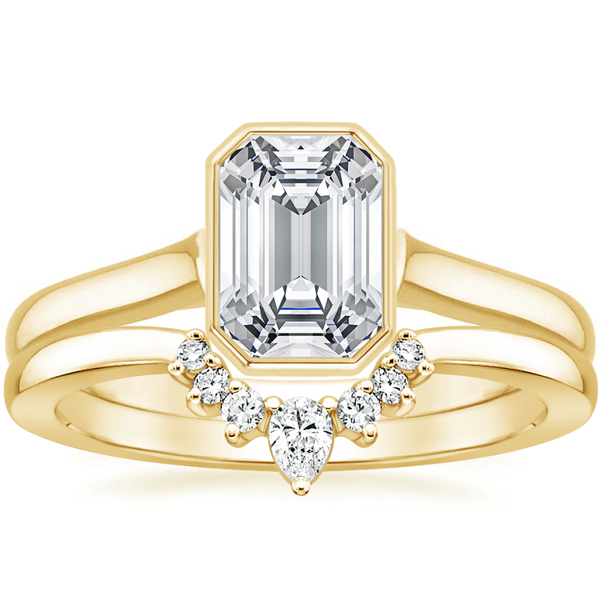 My fiance and I picked out a bezel-style when we went ring shopping, but I knew I wanted an emerald cut gem and yellow gold metal. They didn't have anything like that in store, but we knew it would be perfect. He proposed with this gorgeous emerald-cut moissanite in the Luna setting, and I'm just as obsessed now almost a year later than I was the day he proposed :) Bonus: everyone always comments how "unique" it is, and I choose to take that as an immense compliment!