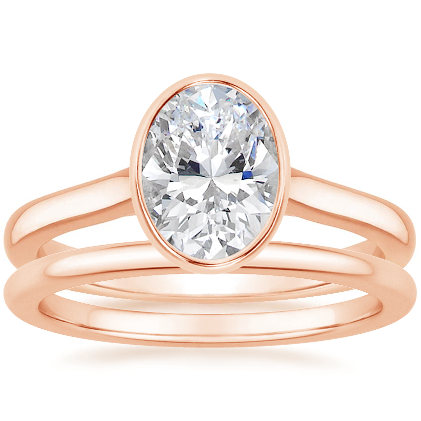 14K Rose Gold Luna Ring with Petite Comfort Fit Wedding Ring