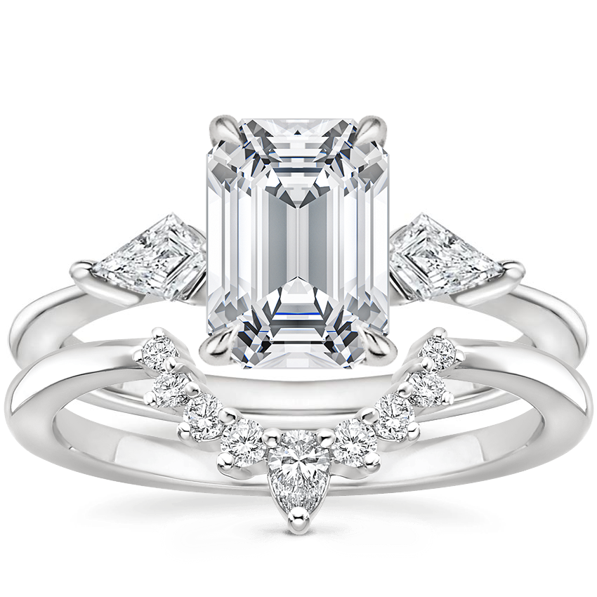 Platinum Luxe Cometa Diamond Ring (1/3 ct. tw.) with Elongated Lunette Diamond Ring (1/8 ct. tw.)