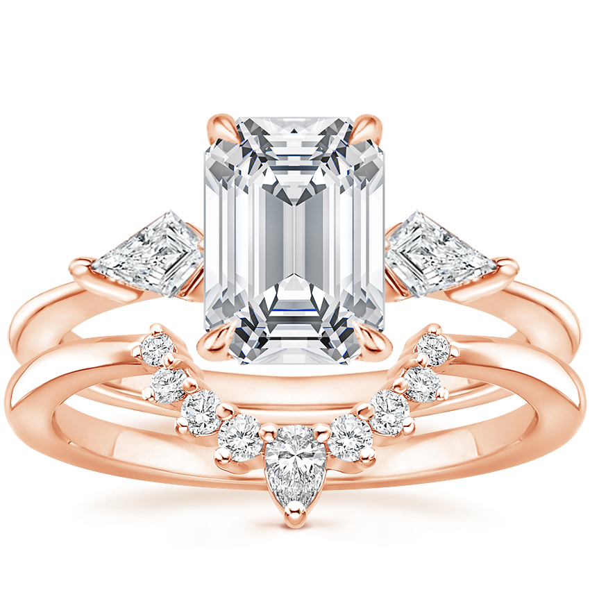 14K Rose Gold Luxe Cometa Diamond Ring (1/3 ct. tw.) with Elongated Lunette Diamond Ring (1/8 ct. tw.)