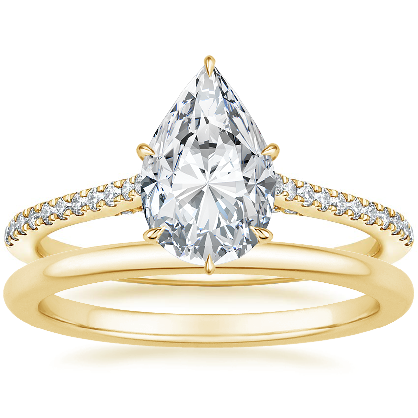 Luxe Dawn Diamond Ring with Petite Comfort Fit Wedding Ring in 18K Yellow Gold