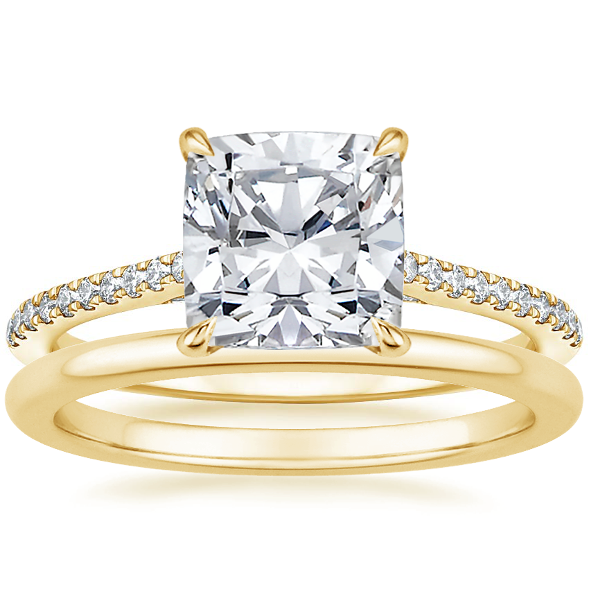 18K Yellow Gold Luxe Dawn Diamond Ring with Petite Comfort Fit Wedding Ring