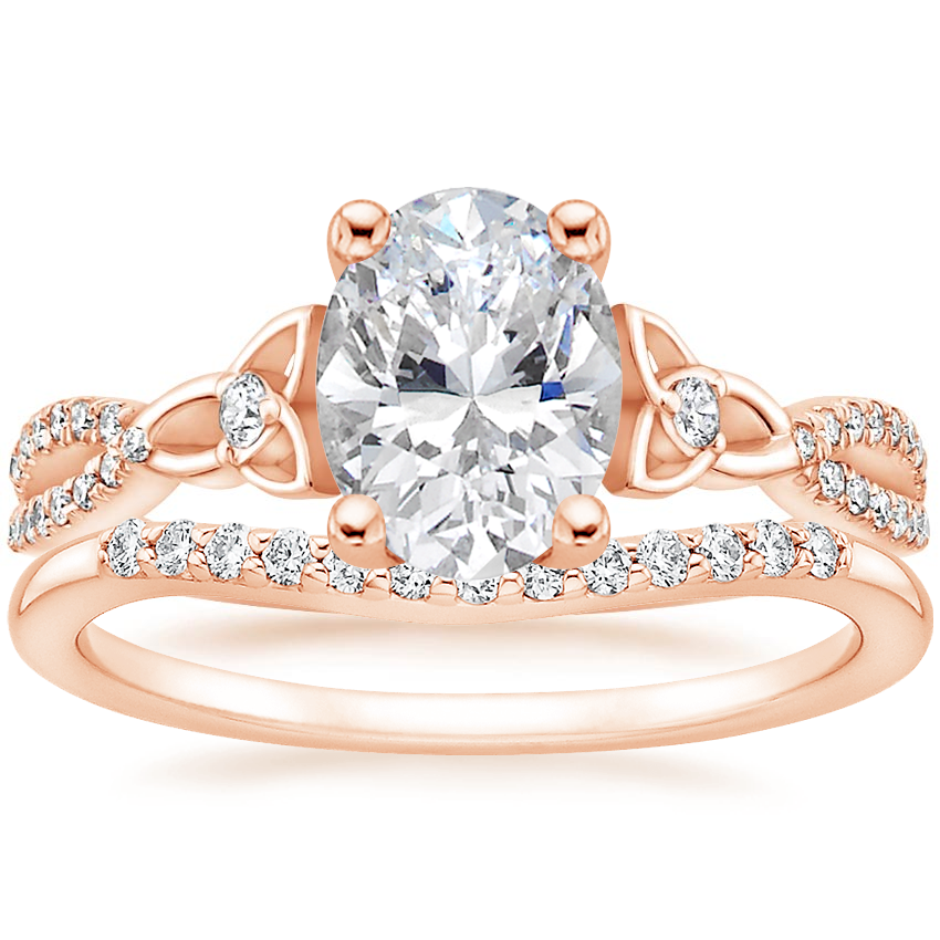 Luxe Entwined Celtic Love Knot Diamond Ring with Petite Curved Diamond Ring (1/10 ct. tw.) in 14K Rose Gold