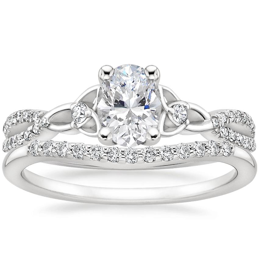 18K White Gold Luxe Entwined Celtic Love Knot Diamond Ring with Petite Curved Diamond Ring (1/10 ct. tw.)