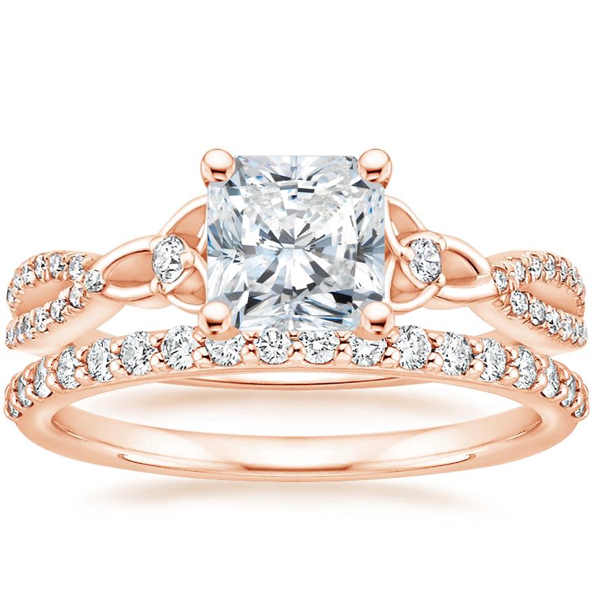 14K Rose Gold Luxe Entwined Celtic Love Knot Diamond Ring with Petite Shared Prong Diamond Ring (1/4 ct. tw.)