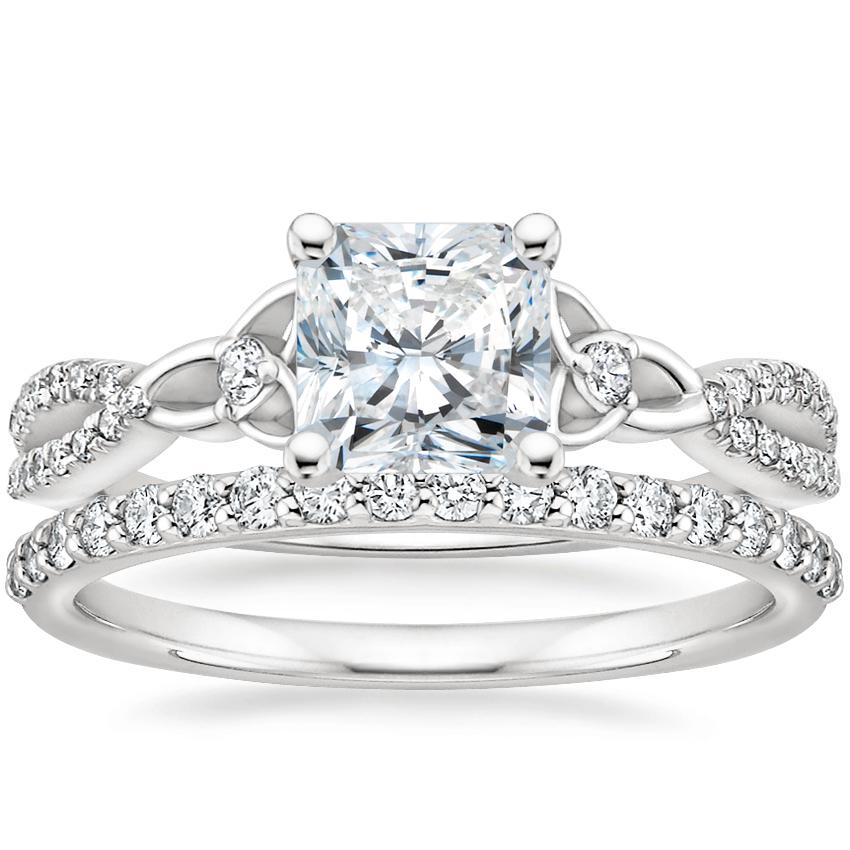 18K White Gold Luxe Entwined Celtic Love Knot Diamond Ring with Petite Shared Prong Diamond Ring (1/4 ct. tw.)