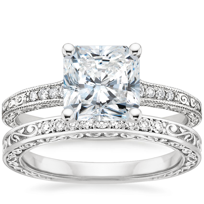 Its beautiful! I chose my own engagement ring since I've always had a design in mind. This band is definitely more intricate than I had in mind but I couldn't stop comparing every other band to this one. And I will add, compared to the images online, its hand carved detailed design is more difficult to see in person since the band is more delicate than I had imagined. HOWEVER it's just simply beautiful and now I cant stop staring at it. For size reference, I went with a 1. 01 Carat Emerald Cut Diamond.