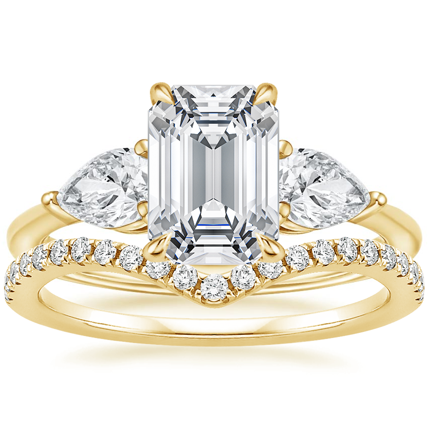 18K Yellow Gold Luxe Opera Three Stone Diamond Ring with Flair Diamond Ring (1/6 ct. tw.)