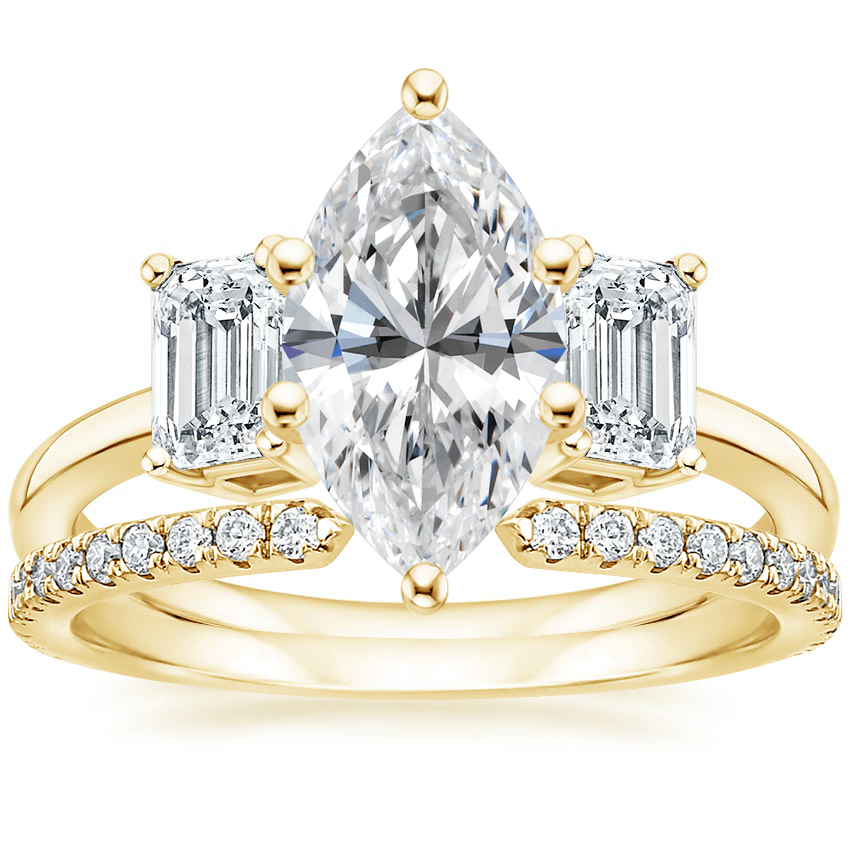 18K Yellow Gold Luxe Rhiannon Diamond Ring (3/4 ct. tw.) with Luxe Sia Diamond Open Ring (1/5 ct. tw.)