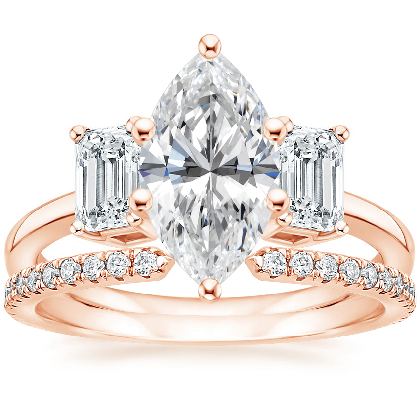 14K Rose Gold Luxe Rhiannon Diamond Ring (3/4 ct. tw.) with Luxe Sia Diamond Open Ring (1/5 ct. tw.)