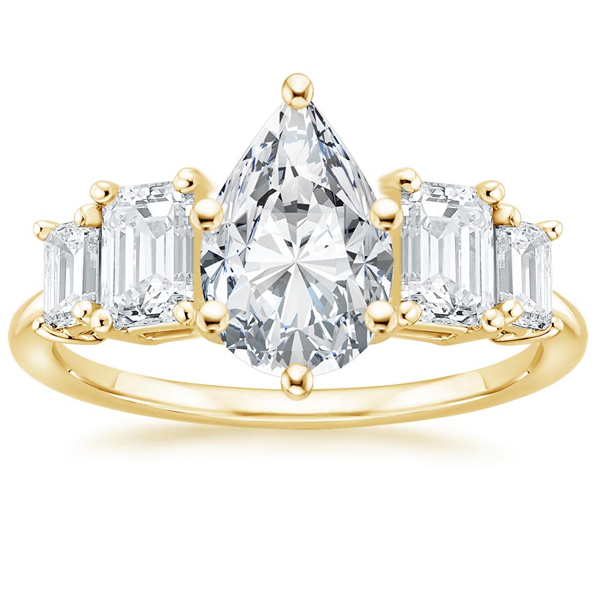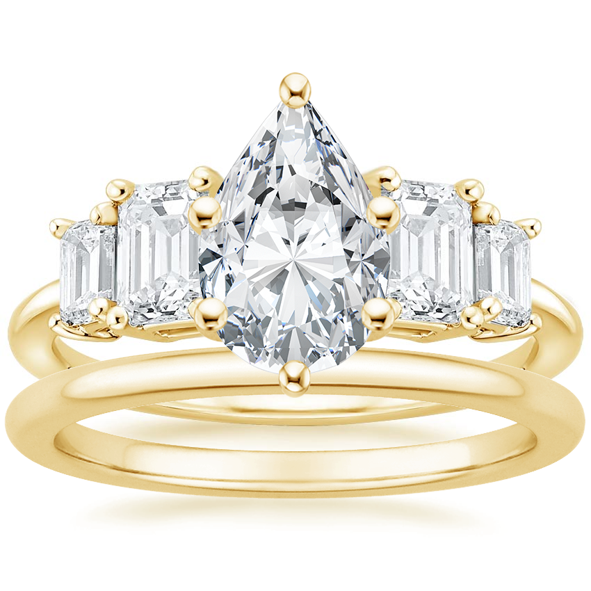 18K Yellow Gold Luxe Rhiannon Five Stone Diamond Ring with Petite Comfort Fit Wedding Ring