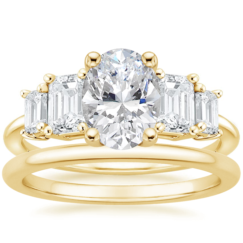 18K Yellow Gold Luxe Rhiannon Five Stone Diamond Ring with Petite Comfort Fit Wedding Ring