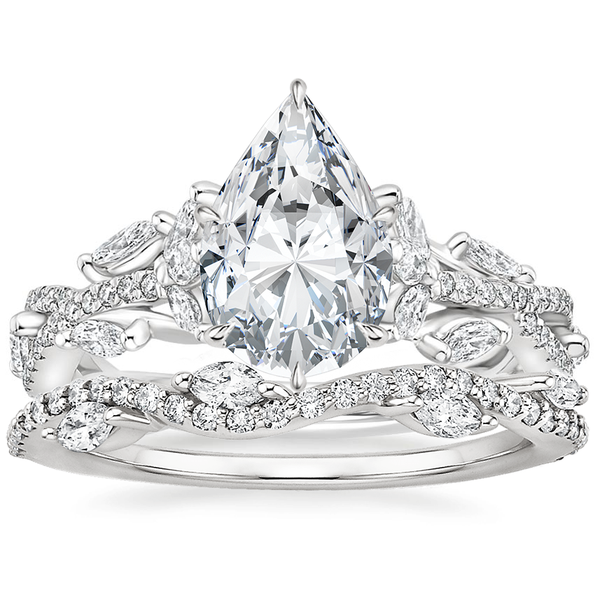 18K White Gold Luxe Secret Garden Diamond Ring (3/4 ct. tw.) with Luxe Winding Willow Diamond Ring (1/4 ct. tw.)