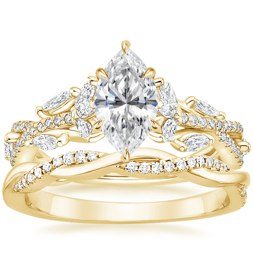 18K Yellow Gold Luxe Secret Garden Diamond Ring (3/4 ct. tw.) with Petite Twisted Vine Diamond Ring (1/8 ct. tw.)