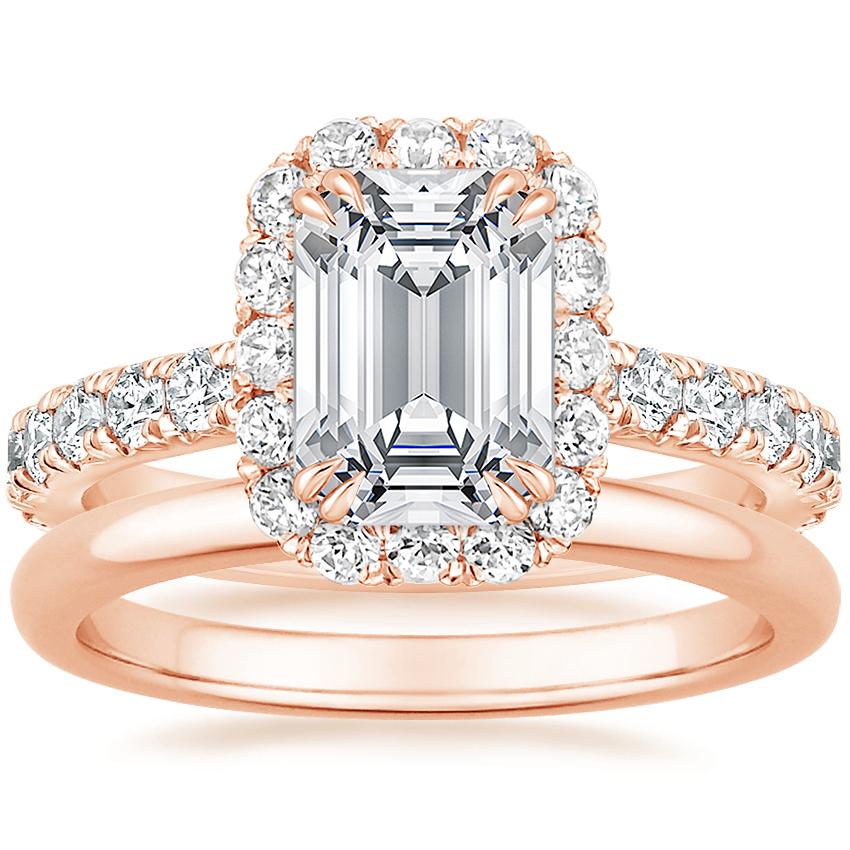 Luxe Sienna Halo Diamond Ring (3/4 ct. tw.) with 2mm Comfort Fit Wedding Ring in 14K Rose Gold