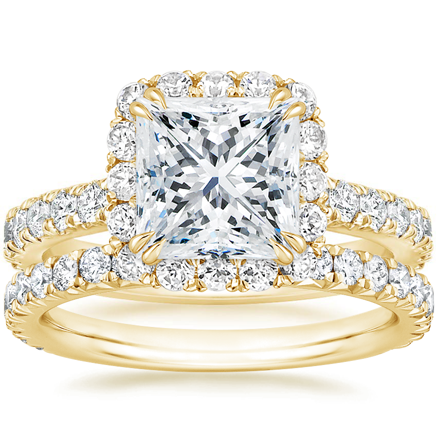 18K Yellow Gold Luxe Sienna Halo Diamond Ring (3/4 ct. tw.) with Luxe Amelie Diamond Ring (1/2 ct. tw.)